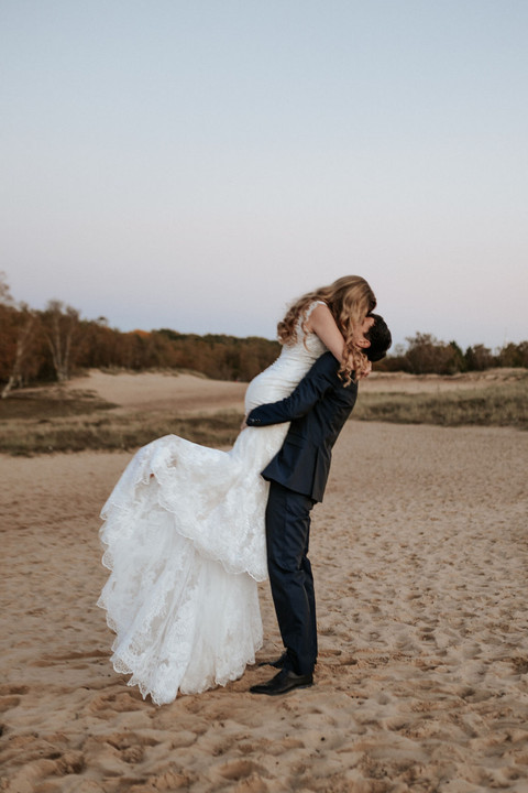Nygifte billeder efter brylluppet i klitterne